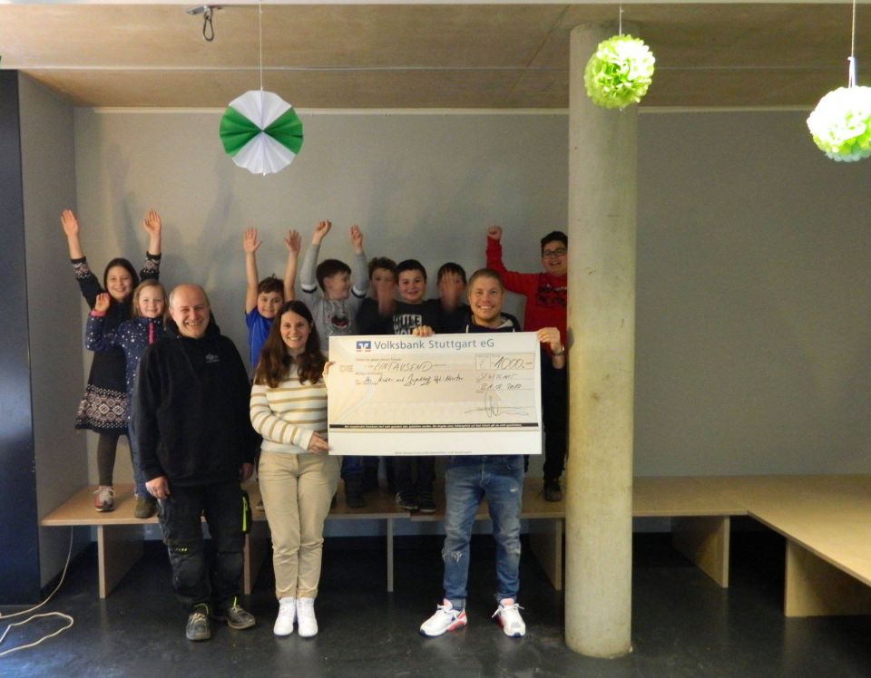 Da freuen sich die Kinder des Kinder- und Jugendtreffs Münster! Ihnen und der Leiterin Frau Stefanie Feil konnte der HGV - Pressesprecher Patrick Hanauer heute einen Scheck über 1000 Euro überreichen, der dringend benötigt wird, um die seit 2012 gewünschte Relax- und Couchecke, die mangels finanziellen Mitteln nun erst realisiert werden kann, komplett fertig zu stellen. |