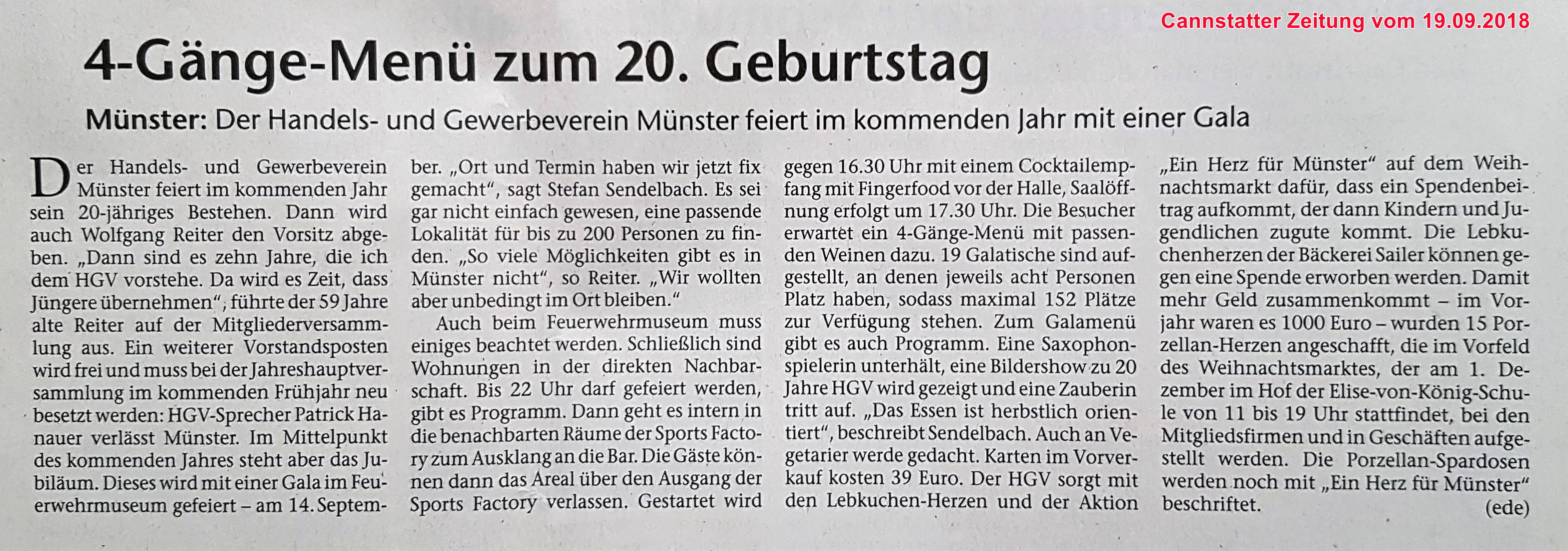 In der Ausgabe vom Freitag erschien in der Stuttgarter Zeitung und den Stuttgarter Nachrichten, Ausgabe Bad Cannstatt & Neckarvororte, wieder unsere Anzeigen-Sonderveröffentlichung - Stuttgart-Münster - Aktive Unternehmen im HGV auf einen Blick und nun auch zeitgleich in der Cannstatter Zeitung.